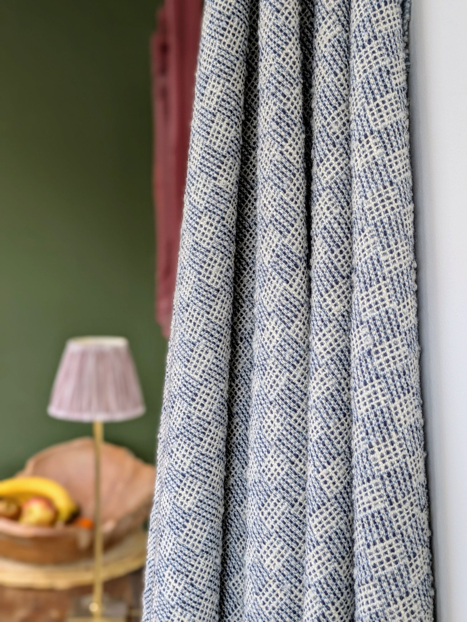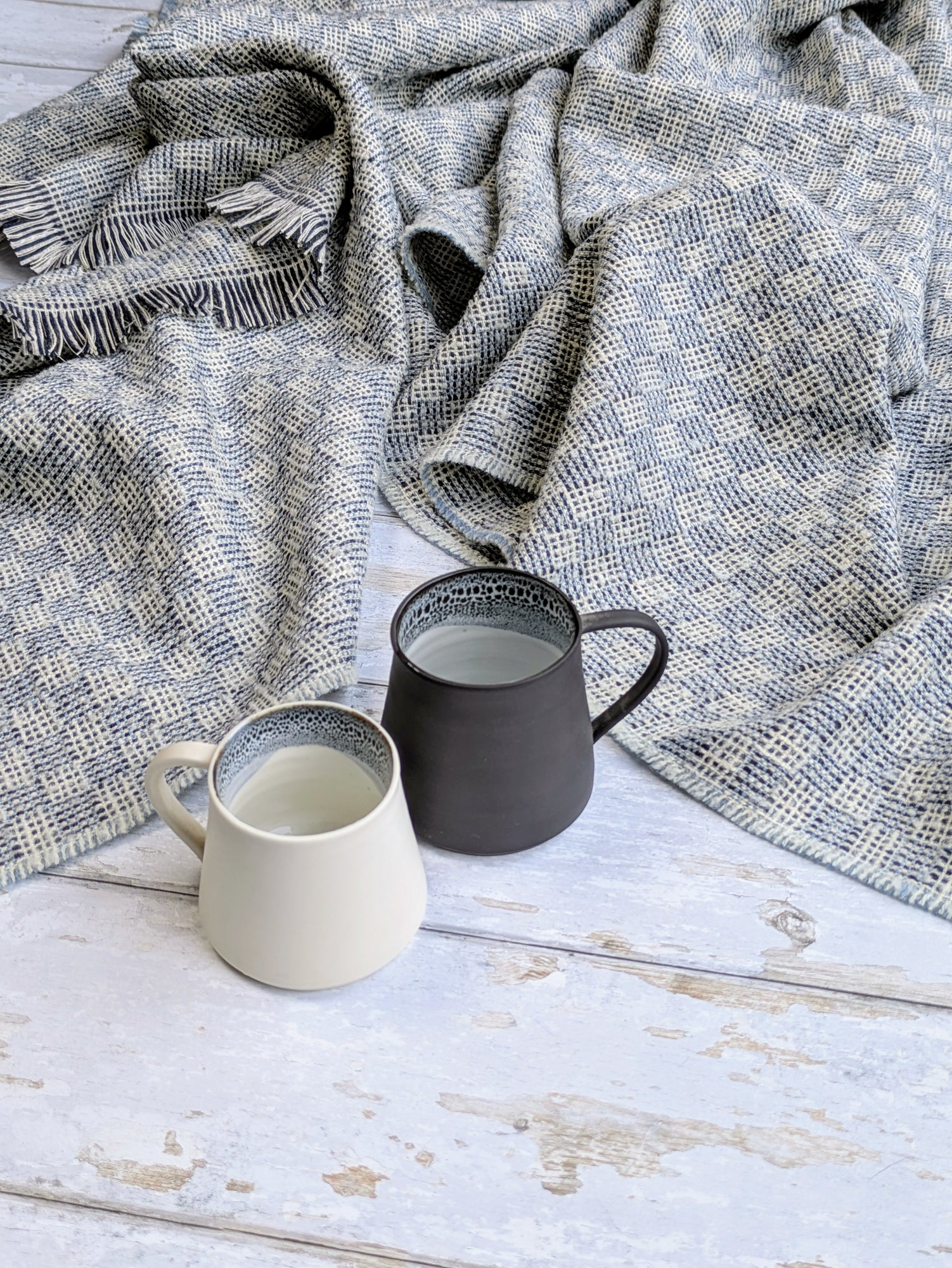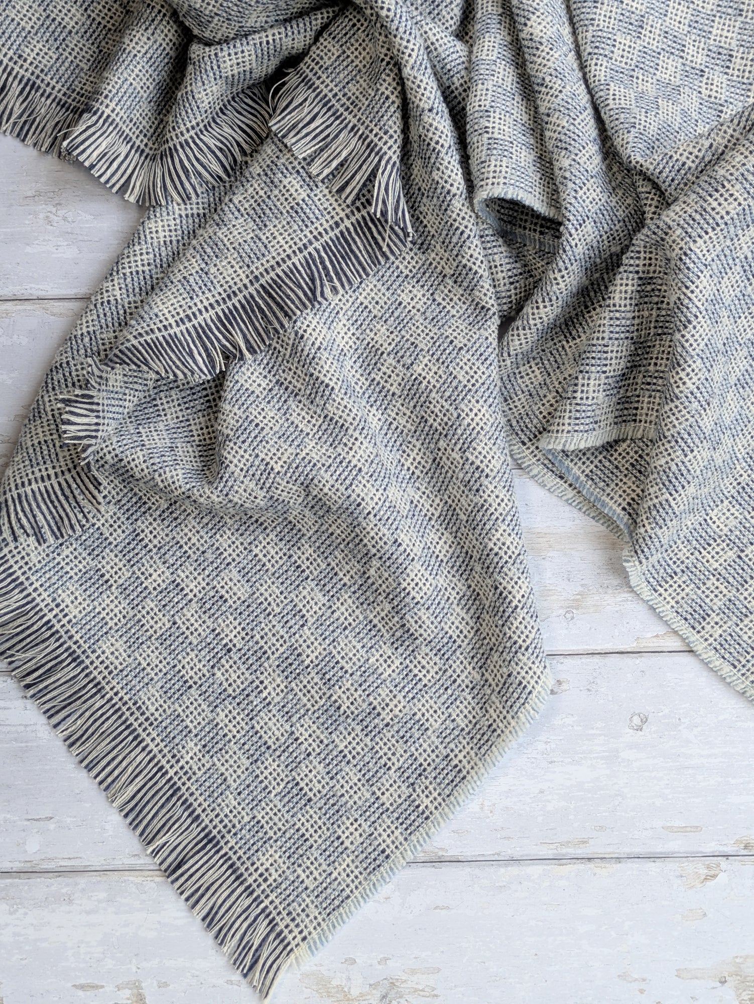 A soft, fine and fluffy lambswool, wool boucle and cotton blanket with a striking block weave pattern. These blankets are created with suitability at the forefront of our minds - the yarns are a mix of British yarns as well as deadstock that would have made their way into landfill.